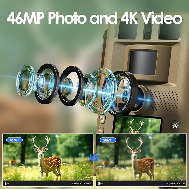 Integrated Wi-Fi and Bluetooth capabilities make it easy to transfer images and videos. Additionally, the built-in 5000mAh battery combined with the option to run continuously using solar panels is a great sustainable power solution, making it suitable for a variety of outdoor environments.