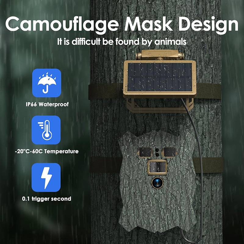 Integrated Wi-Fi and Bluetooth capabilities make it easy to transfer images and videos. Additionally, the built-in 5000mAh battery combined with the option to run continuously using solar panels is a great sustainable power solution, making it suitable for a variety of outdoor environments.
